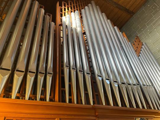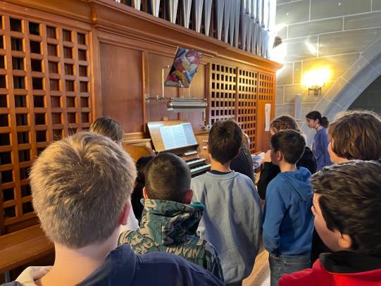 Passend zur Thematik der Instrumente im Musikunterricht, machte die Klasse einen Besuch in der Stadtkirche. Wir durften mit der Organistin Frau Wirz die Orgel etwas genauer unter die Lupe nehmen und neben vielen Hörerfahrungen auch viele Fragen stellen. Wir waren alle sehr überrascht, dass die Orgel viele Instrumente „imitiert“ und man eine Orgel auch mit den Füssen spielen kann.
