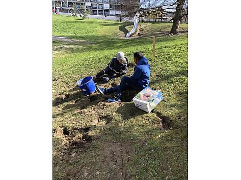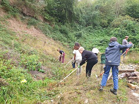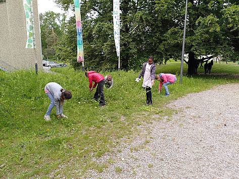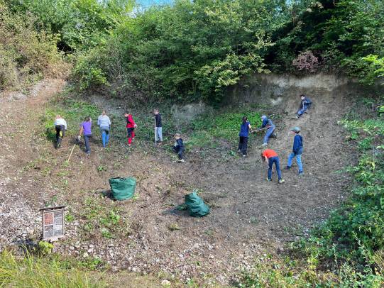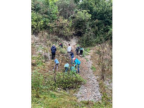 Einen ganzen Morgen lang half eine Mittelstufenklasse, den Tieren wieder einen besseren und für sie helleren und somit wärmeren Lebensraum zu gestalten. Da wurden Pflanzen ausgerissen, Hecken geschnitten, Pflanzen samt Wurzel entfernt. Dabei kam das Lernen von neuen Pflanzen, das Staunen von Pflanzen und ihren unglaublichen Fähigkeiten oder das Beobachten der Tiere nicht zu kurz.