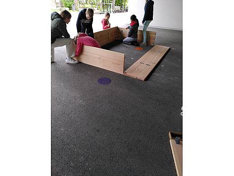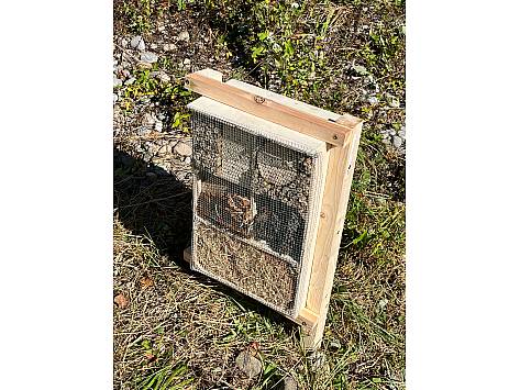 Nebst den vielen Arbeiten wurde das neue Insektenhotel, an welchem im letzten Schuljahr gearbeitet wurde, an seinem neuen Standort eingepflockt und eingeweiht.