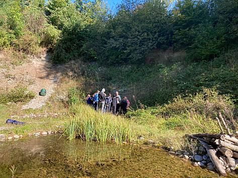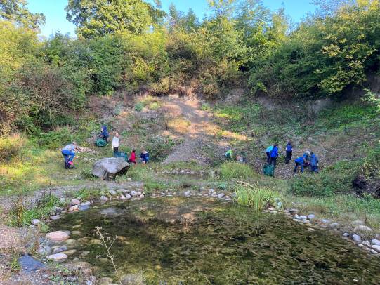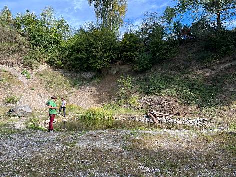 Unter der Leitung der Biologin Christine Müller erhielt die Klasse den Auftrag, das Chüeweidgrüebli von Unkraut zu befreien. Dies, damit die Kiesgrube wieder mehr Wärme speichern kann, was für das Überleben von unzähligen Kleilebewesen und Insekten rund ums Biotop wichtig ist. Einen Morgen lang schuftete die Klasse unermüdlich und das gemeinsam definierte Ziel, eine gelbe Tonne zu füllen, wurde super erfüllt. Es war anstrengend, schweisstreibend, aber ein unglaublich tolles Erlebnis! Der gemeinsame Zusammenhalt, das einander Helfen und das gegenseitige Motivieren war grossartig! Nebenbei wurden viele Tiere entdeckt: Bergmolch, Libellen, Frösche und Kröten, Heuschrecken, Spinnen, Käfer und und und…