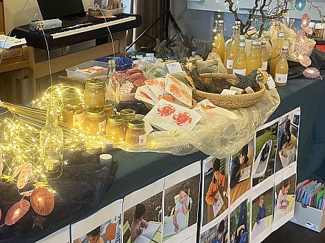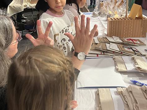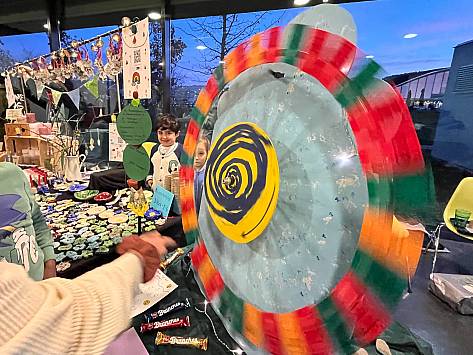 Wenn es in der Primarschule Lindenfeld nach Suppe, Popcorn und Glühmost duftet, vor dem auf dem Areal unzählige Kerzen und zwei Feuer brennen und sich eine lange Schlange vor dem Waffelstand bildet, dann ist Novembermarkt. Auch drinnen drängeln sich grosse und kleine Menschen. Sie bestaunen die vielen Sachen, die in den vergangenen Wochen und Tagen entstanden und nun zum Verkauf angeboten werden. Schnell wechseln von der Abwaschbürste,getrockneten Apfelschnitzen, Getöpfertem, Handtüchern, Kerzen, Kränzen, Weihnachtskugeln, bis zum Zitronenthymiansalz schier unzählige Kostbarkeiten die Besitzer*innen. „Eh, jetzt habe ich gerade die Geschenke für meine Schwestern“, ist eine Besucherin glücklich. Ein Vater freut sich, dass er bei seinem Sohn den Hauptgewinn der Lotterie gewonnen hat und auch das Zwirbelrad steht selten still.