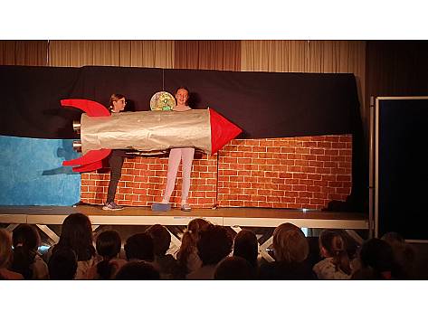 Je länger je mehr entstand eine Geschichte, die Kinder improvisierten in verschiedenen Rollen und versuchten so herauszufinden, was ihnen am meisten Freude bereitet. Im Hintergrund arbeiteten Frau Brühlhart und Frau Küpfer - sie schrieben die Geschichte, die entstanden ist auf Papier, verteilten die Rollen und überarbeiteten laufend das Drehbuch.