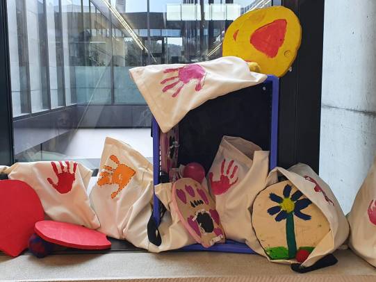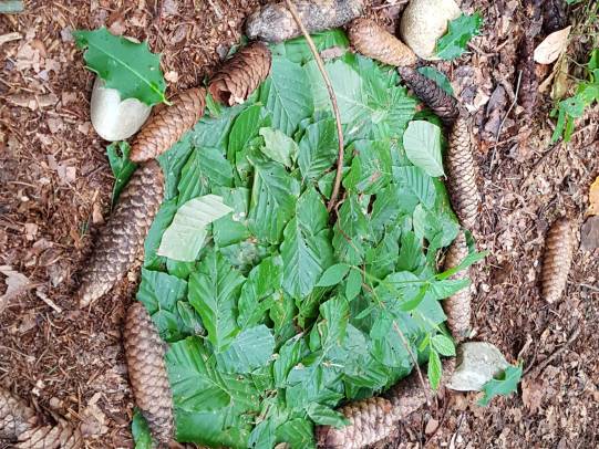 Alle Kinder sammelten unterwegs einen oder mehrere Gegenstände und legten diese zu einem Gemeinschaftsbild.