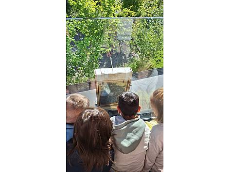 In der EK sind Bienen eingezogen: Die Kinder haben bis zu den Sommerferien die Möglichkeit, ein Bienenvolk in einem Bienenschaukasten zu beobachten.