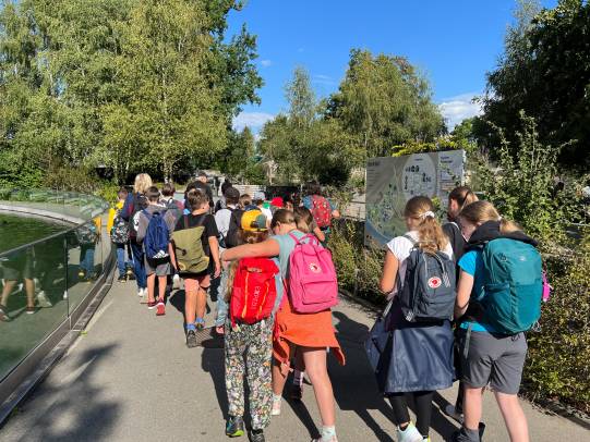 Die Mittelstufenklasse besuchte den Tierpark Dählhölzli. Zuerst durften die Kinder in Gruppen frei Tiere nach Lust und Laune besuchen. Anschliessend gab es eine Führung zum Thema Grossraubtiere der Schweiz und domestizierte Tiere. Dabei informierte uns der Zoopädagoge über verschiedene Tiere und gemeinsam tauschten wir uns aus, warum gewisse Tiere domestiziert (gezähmt; zu Haustieren) wurden und warum andere nicht.