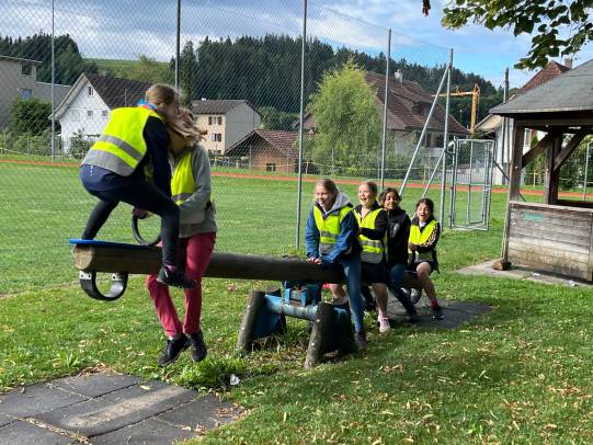 Im Mai bummelten alle Klassen der Primarschule Lindenfeld zum Siebenwegenplatz. Zum Start sangen die rund 150 Grossen und Kleinen den Lindenfeldsong und danach konnten die ersten hungrigen Kinder bereits ihren Cervelat über einem der drei Feuer bräteln. Andere spielten derweil mit der Hängematte, schaukelten oder versuchten über die Slackline zu balancieren, dabei durften die Kleinen oft auf die Hilfe der grösseren Kinder zählen. Zudem entstanden Häuschen und Brücken, es wurde Fangen gespielt oder ganz einfach miteinander geplaudert. Wer Lust hatte, durfte sogar in die Märchenwelt eintauchen.