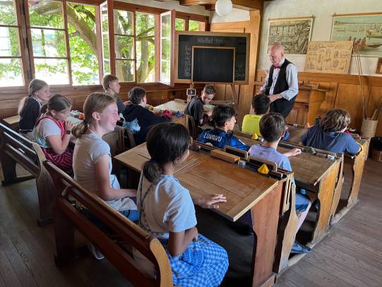 Am dritten Tag ging es am Morgen in die Kletterhalle. Mit super Begleitung schafften es alle zu Bouldern und sogar eine senkrechte Wand mit Seilen hochzuklettern. Jedes Kind schaffte es über seine bisherigen Grenzen hinaus und erreichte Unglaubliches! Am Nachmittag besuchten wir das Schulmuseum Bern und durften eine historische Lektion miterleben, wie es etwa vor 100 Jahren hätte aussehen können.