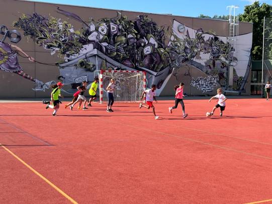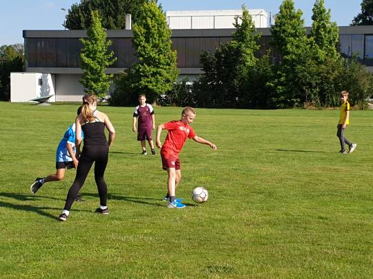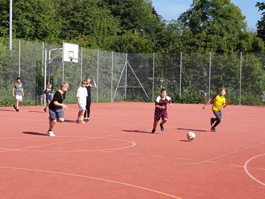 Der sonnige Morgen lockte nach draussen. Der Bundesrat mit seine Schüler*innenvertretung hatte einen Fussballmorgen geplant. Nach einer Qualifikationsrunde mit klassengemischten Gruppen wurde nach der Pause im A Final und B Finale um die ersten zwei Plätze gekämpft, welche zum Schluss noch ein Finalspiel hatten. Es brauchte keine Schiris für die siebenminütigen Spiele - die Schüler*innen schafften es problemlos, sich an die Regeln zu halten und Fairplay war nebst der Freude das oberste Ziel.