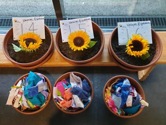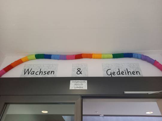 In den einzelnen Klassen wurde nach dem gemeinsamen Start Kresse angesät. Diese Aktion passt zum diesjährigen Schuljahresmotto «Wachsen und Gedeihen ». Am Mittag flatterten auf dem ganzen Schulhausareal bunte Bänder.