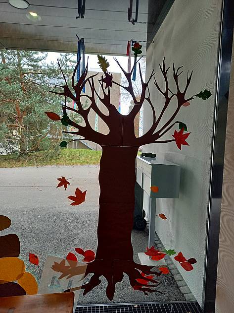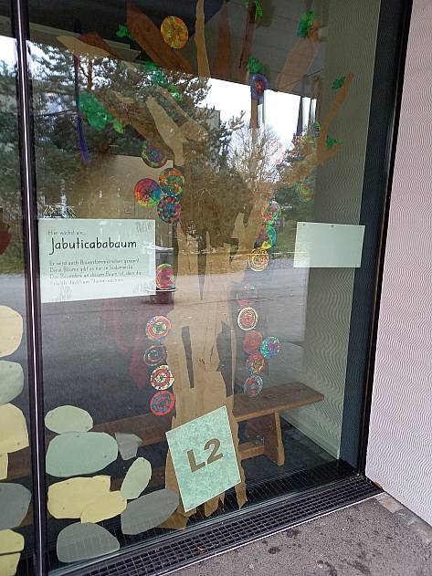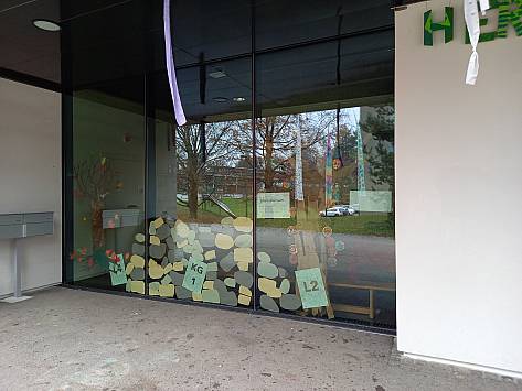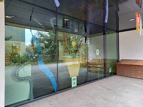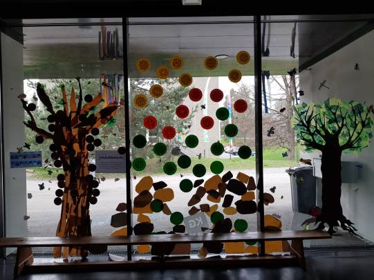Die Kindergarten- und Schulkinder gestalteten die Fenster passend zum Schuljahresmotto «Wachsen und Gedeihen».