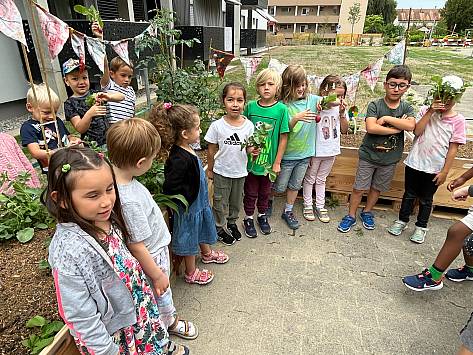 Keine Woche später staunten wir wieder: Nigelnagelneue Hochbeete standen da, gefüllt mit frischer Erde. Das waren keine Heinzelmännchen, das waren die Männer von Stadtgrün, wussten unsere Kindergärtnerinnen.