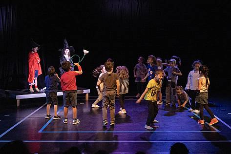 Dann kam der grosse Tag – die Reise nach Bern in den Brückenpfeiler. Dort durften wir auf einer professionellen Bühne, mit Scheinwerfer und Musik unser Stück einem anderen Kindergarten vorführen. Dieser andere Kindergarten spielte anschliessend ihr Stück uns vor.