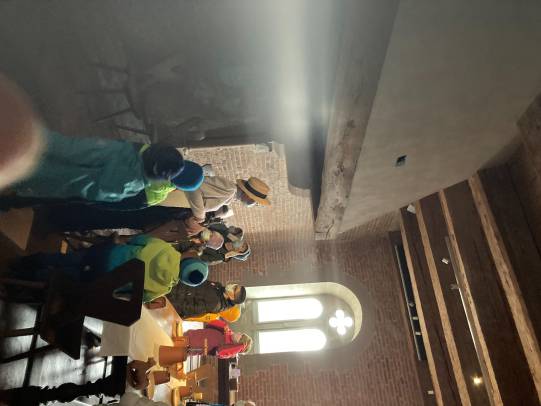 Danach durfte das Raumerlebnis Kirche nicht fehlen - denn in einem solchen Raum zu singen ist sehr speziell. Wir hörten genau hin, sangen an verschiedenen Orten, hörten einander zu während des Umhergehens und erlebten einen solch hohen Raum als etwas sehr anderes als den Musikraum in der Schule.