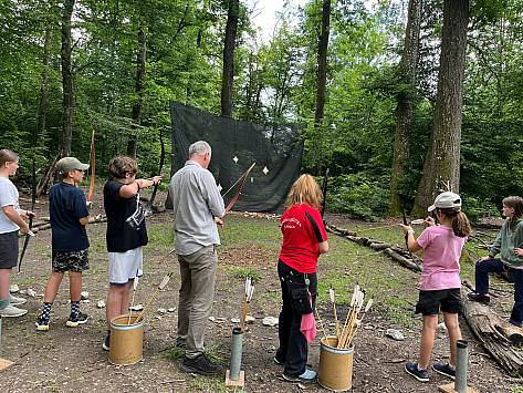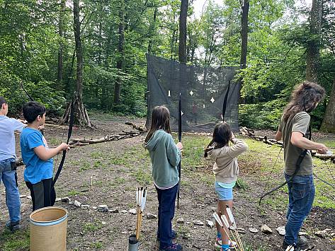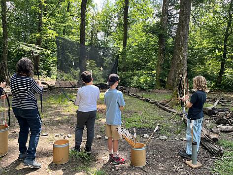 Wir waren in der Landschulwoche in Saignelegier. Am ersten Tag sind wir Bogenschiessen gegangen. Das war bei La Caquerelle. Es gab einen richtigen Parkour.