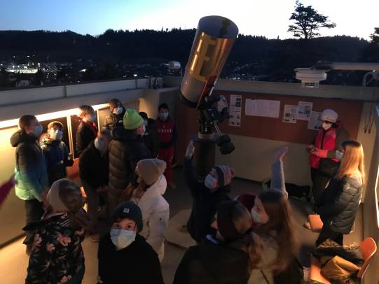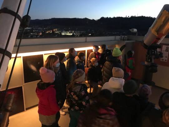 Herr Fankhauser war hoch erfreut über all die Fragen und all den Vorstellungen, was die Kinder gerne sehen möchten. Mit dem alten von Hand auszurichtenden Teleskop (über 100-jährig) und dem neuen Teleskop (auszurichten mit einer App), konnten wir tiefe Einblicke in den Himmel erhaschen - und somit in die Gegenwart aber auch in die Vergangenheit.
