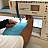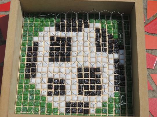 Ein neuer Sitzplatz aus Betonelementen, verziert mit Mosaiken, lädt zum Verweilen und Springen ein.