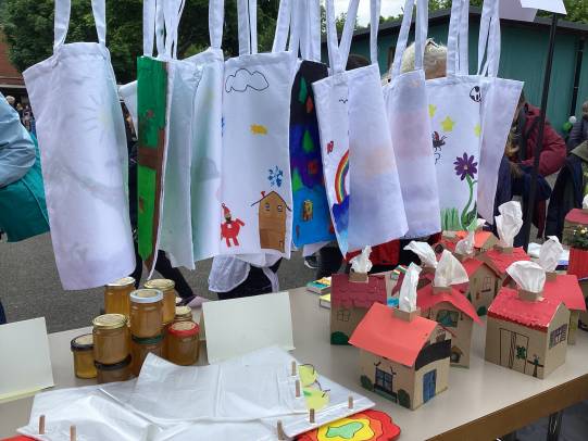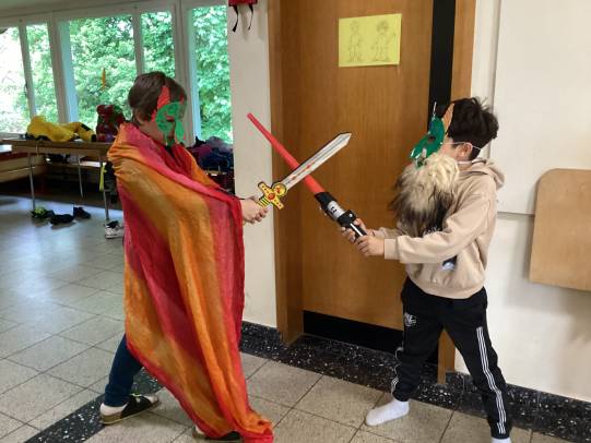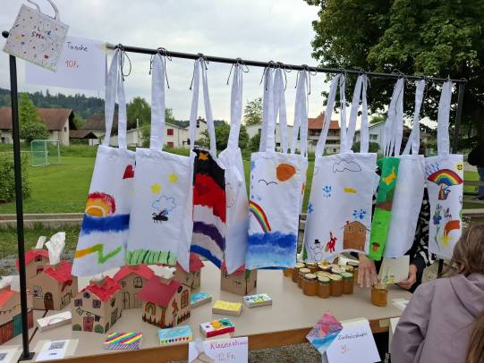 Am Donnerstag endete die Projektwoche mit einem fröhlichen Schul- und Einweihungsfest. Die Piraten der Tanzgruppe haben symbolisch das neue Schulgebäude erobert. Die Schule verwandelte sich in einen bunten Markt mit Verkaufsständen, Ausstellungen und Darbietungen. Stolz präsentierten die Kinder ihre Produkte und Darbietungen den zahlreich erschienenen Familien, Verwandten und Gästen. In den Räumen der neuen Tagesschule wurde Kaffee und Kuchen serviert.
