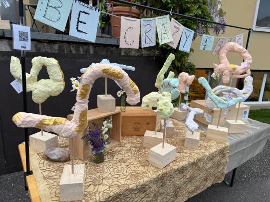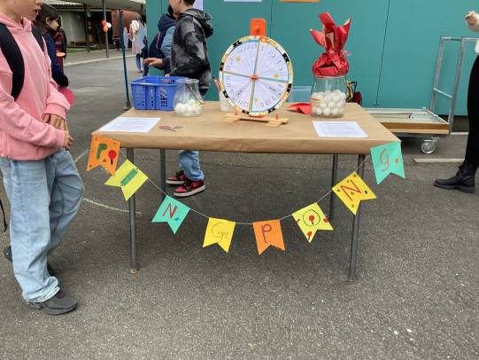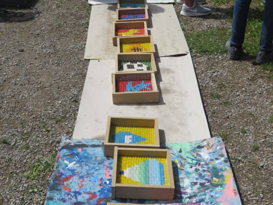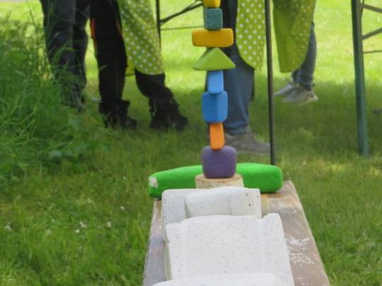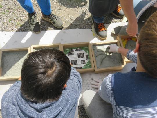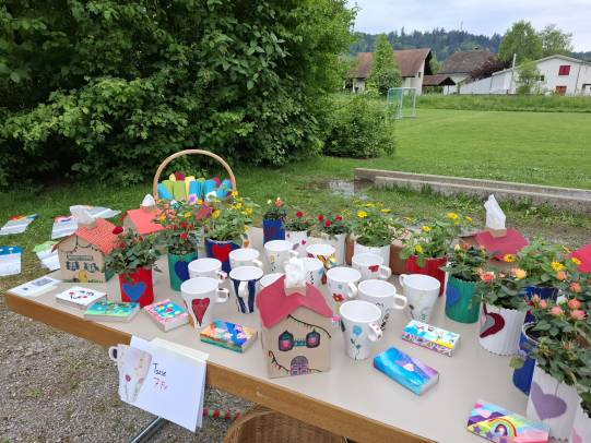 Eine grosse Schweizerkarte wurde aufgemalt, Spielmöglichkeiten dazu wurden kreiert. In Zukunft kann Mühle, Dart, Twister, Tic tac toe und Himmel und Hölle gespielt werden. Auch Vier gewinnt, Memory und Mikado gibt es in XXL-Ausführung. Das grosse Kugellabyrinth fordert die Kooperationsbereitschaft heraus. Aus Steinen und Holunderholz wurden Spiele kreiert und es sind klingende Werke entstanden. Ein Spielhaus wurde aufgebaut, damit die Spielsachen versorgt werden können.