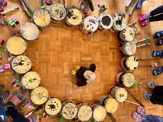 Im Zentrum der musikalischen Geschichte stand die Hexe Baba Jaga mit ihrer dreibeinigen Hühnerfuss-Hütte: Diese stürzte ein, als eines der Beine brach. Auf spielerisch-musikalische Weise halfen die Kinder, eine Lösung zu finden, wie die Hütte wieder repariert und außerdem die wütende Hexe besänftigt werden konnte.