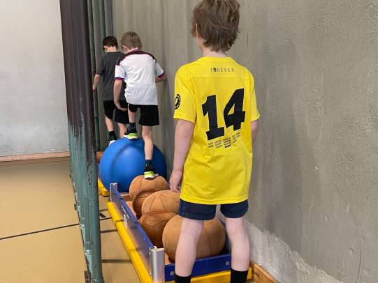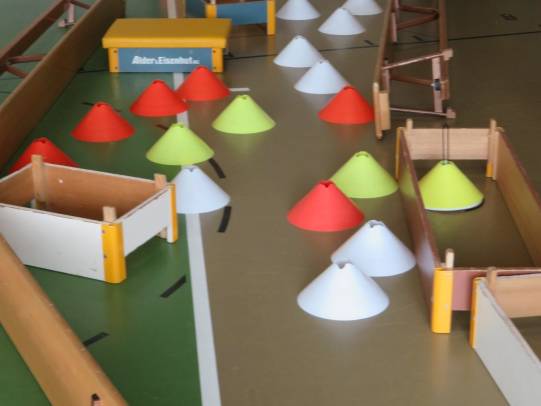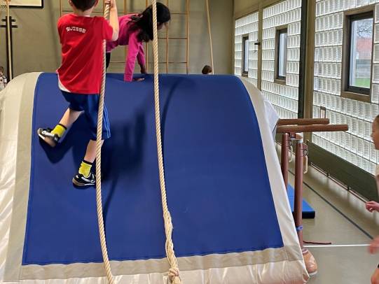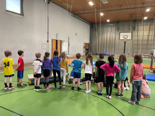 In der Turnhalle stellten die Lehrpersonen einen Geräteparcours mit 10 verschiedenen Posten auf. Dort konnten sich die Kinder eine Stunde lang austoben. Einige Posten erforderten Kraft, andere Geschicklichkeit oder Mut.